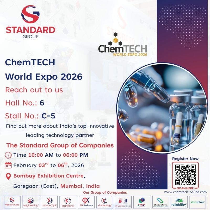 Standard Group of Companies will be exhibiting at ChemTECH World Expo 2026, one of India’s leading exhibitions for the chemical and process industries.